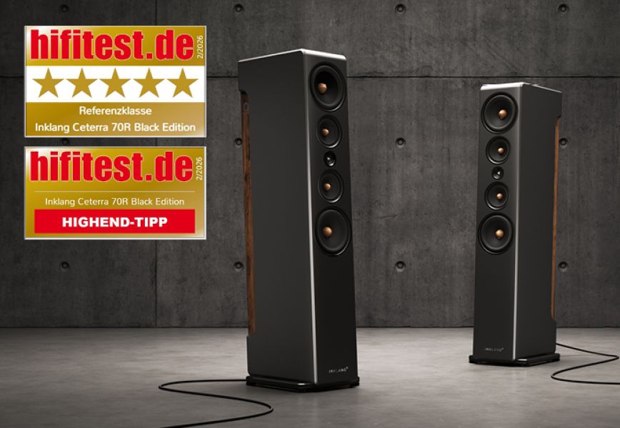 Der Testbericht von HifiTest.de kürt die Inklang Ceterra 70R Black Edition zu einem herausragenden Spitzenmodell, das den Sprung in die absolute High-End-Liga souverän meistert. Mit einer makellosen Bewertung von 5 Sternen in der Referenzklasse überzeugt der Standlautsprecher sowohl optisch als auch akustisch auf ganzer Linie.